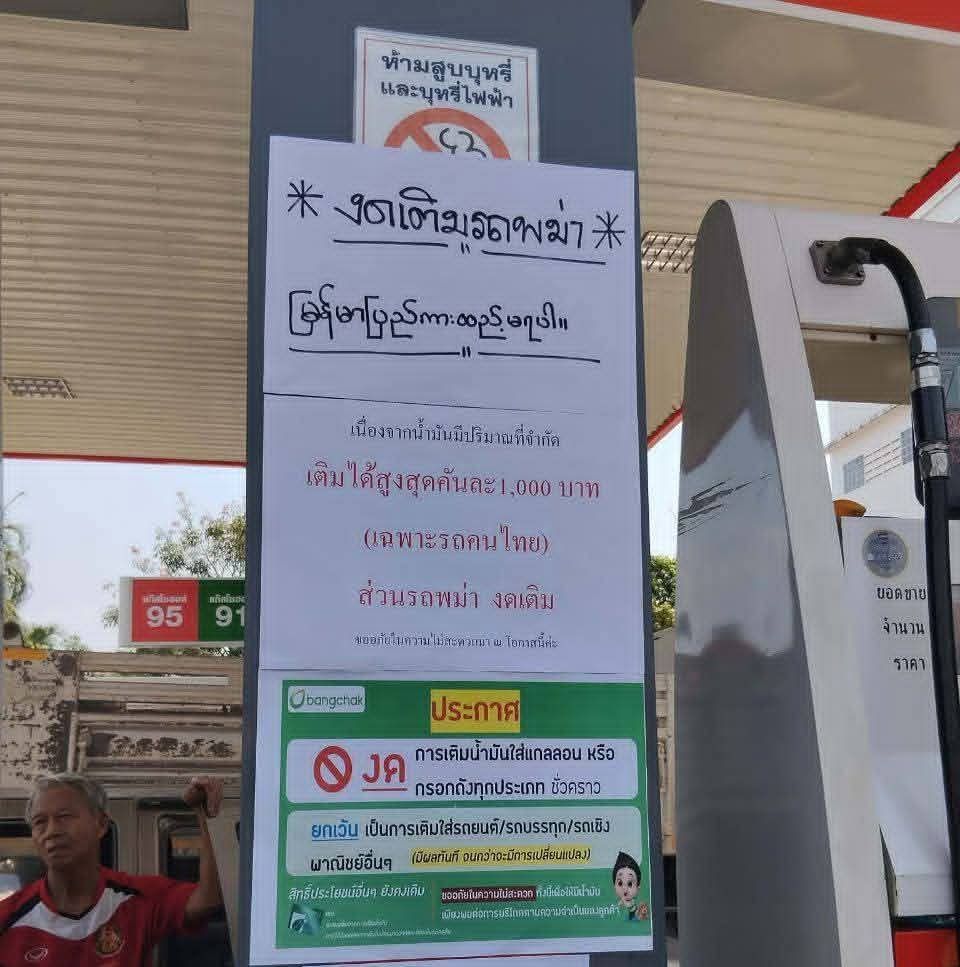 ထိုင်းနိုင်ငံ Tak Province နယ်စပ်ခရိုင်များရှိ ဆီဆိုင်အချို့သည် ဆီရောင်းချမှုကို ကန့်သတ်စတင်ခဲ့ပြီး မြန်မာနံပါတ်ပြားယာဉ်များကို ဆီမဖြည့်ပေးတော့ကြော...